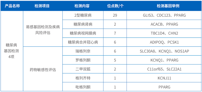 并且通過對瑞格列奈、羅格列酮、二甲雙胍、格列齊特、吡格列酮五種常見糖尿病治療藥物相關(guān)基因進(jìn)行檢測,提高藥物的治療效果,避免藥物不良反應(yīng),為糖尿病疾病個(gè)性化用藥提供指導(dǎo)。