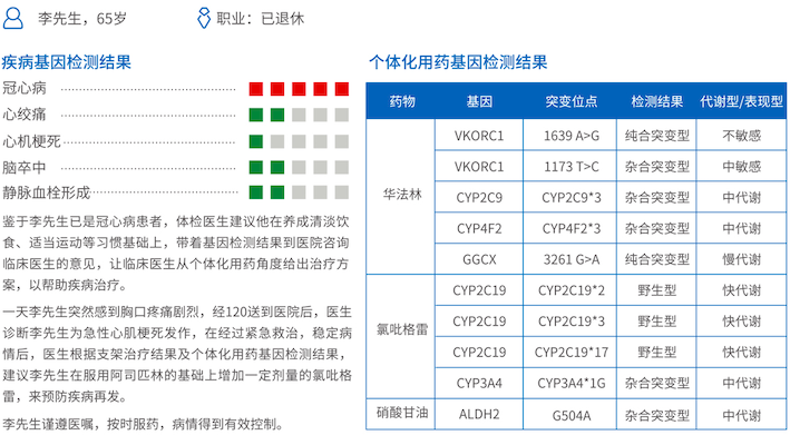 通過對華法林、氯吡格雷、硝酸甘油三種常見血栓治療藥物相關(guān)基因進(jìn)行檢測,提高藥物的治療效果,避免藥物不良反應(yīng),為血栓性疾病個性化用藥提供指導(dǎo)。