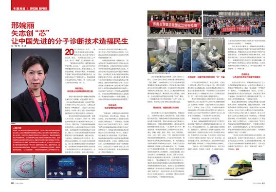 近日,中國期刊中唯一以人物報道為重點的大型綜合性新聞半月刊《中華英才》專訪了清華大學醫(yī)學院研究員、博士生導師,生物芯片北京國家工程研究中心常務副主任,博奧生物集團有限公司高級副總裁,北京博奧晶典生物技術有限公司總裁邢婉麗,深入報道了博奧在抗疫期間全力投入科研攻關的戰(zhàn)“疫”歷程。