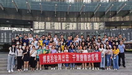 10月,青島市突發(fā)新冠病毒感染疫情,博奧在第一時(shí)間從旗下北京、福建、廣東等各地醫(yī)學(xué)檢驗(yàn)所選調(diào)26名技術(shù)骨干和物資,奔赴青島,投入到抗擊新冠疫情的戰(zhàn)斗中。