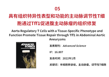 除了維持免疫耐受外,F(xiàn)oxp3+ 調(diào)節(jié)性 T 細胞 (Tregs) 在組織穩(wěn)態(tài)和重塑中發(fā)揮特殊作用。然而,動脈瘤中的 Tregs 是否具有組織特異性的表型和功能尚不清楚。本研究中發(fā)現(xiàn)了一組特殊的可能抑制腹主動脈瘤(AAA)進展的 Tregs,并對其進行了功能表征。主動脈 Tregs 在 AAA 進展中逐漸增加,主要來自外周循環(huán)。單細胞 TCR 測序和批量 RNA 測序顯示了它們獨特的表型和高表達 Tff1。利用 Foxp3cre/creTff1flox/flox小鼠研究 AAA 中 Tff1 的作用,發(fā)現(xiàn)主動脈 Tregs 分泌 Tff1 以調(diào)節(jié)平滑肌細胞 (SMC) 的存活。體外實驗證實 Tff1 通過細胞外信號調(diào)節(jié)激酶(ERK)1/2途徑抑制平滑肌細胞凋亡。這些發(fā)現(xiàn)揭示了主動脈 Tregs 的組織特異性表型和功能,并可能為預(yù)防 AAA 提供一種有希望的新方法。