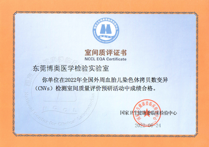近日,國家衛(wèi)生健康委臨床檢驗中心(NCCL)公布了2022年《全國外周血胎兒染色體拷貝數(shù)變異(CNVs)檢測室間質(zhì)量評價預(yù)研活動結(jié)果報告》,博奧晶典旗下北京博奧醫(yī)學(xué)檢驗所有限公司和東莞博奧醫(yī)學(xué)檢驗實驗室滿分通過該項目室間質(zhì)評。