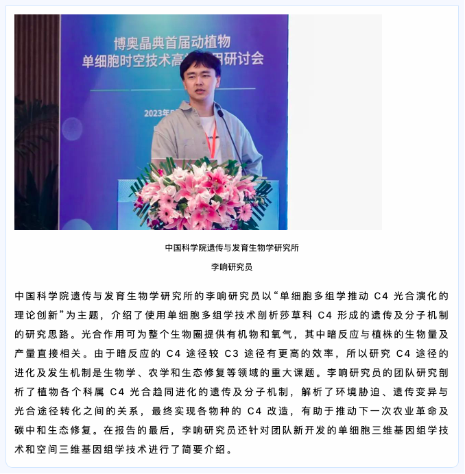 會(huì)議伊始,科研合作服務(wù)中心主任李彥澤博士對(duì)參會(huì)來賓表示熱烈歡迎,回顧了時(shí)空組學(xué)技術(shù)在動(dòng)植物領(lǐng)域的里程碑事件,并預(yù)祝首屆動(dòng)植物單細(xì)胞時(shí)空技術(shù)高端應(yīng)用研討會(huì)圓滿召開。