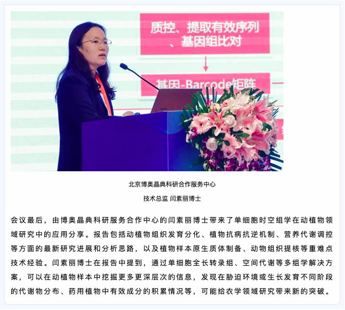 至此,博奧晶典首屆動(dòng)植物單細(xì)胞時(shí)空技術(shù)高端應(yīng)用研討會(huì)圓滿落幕,期待與各位老師后續(xù)建立科研友誼并形成豐碩的科研成果,希望每一位參會(huì)嘉賓都有所收獲,期待下一屆研討會(huì)博奧晶典與您再相見!
