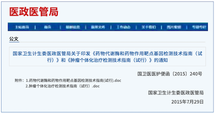 2015年7月31日,國家衛(wèi)生計(jì)生委醫(yī)政醫(yī)管局印發(fā)的《藥物代謝酶和藥物作用靶點(diǎn)基因檢測技術(shù)指南(試行)》中,明確給出“常見藥物代謝酶和藥物作用靶點(diǎn)基因遺傳變異檢測結(jié)果對臨床用藥的指導(dǎo)建議“:根據(jù) CYP2C19、CYP2C9、VKORC1、CYP4F2等基因的多態(tài)性檢測結(jié)果,可相應(yīng)調(diào)整藥物(華法林、氯吡格雷)的給藥方案。