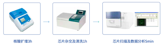 ASPUA是基于檢測基因突變的等位基因特異性PCR技術(shù)和通用微陣列芯片技術(shù)建立的。通過多重不對稱擴(kuò)增獲得了大量的擴(kuò)增產(chǎn)物,借助熱變性制備單鏈,最終通過與通用芯片雜交實(shí)現(xiàn)結(jié)果檢測。