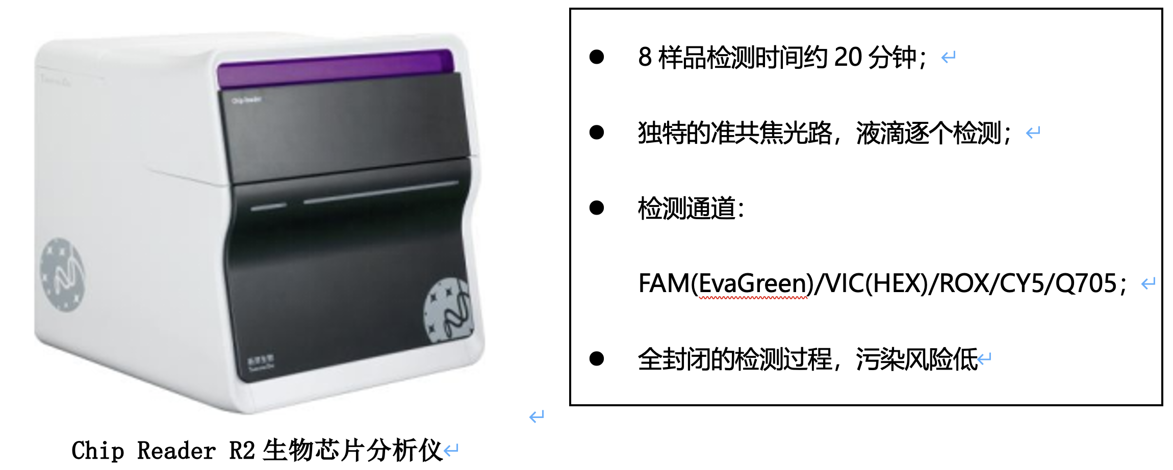 TD-2微滴式數字PCR系統包括: Drop Maker 樣本制備儀, Chip Reader 生物芯片分析儀,③配套通用 試劑和耗材,儀器平臺使用簡單,手工操作步驟少,整個反應過程在封閉空間進行,防止:PCR產物的污染,該系統適用于稀有突變檢測、拷貝數變異和基因相對表達領域的研究,可廣泛應用于腫瘤、遺傳病、感染性疾病的診斷和研究。